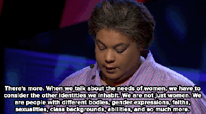 Roxane wrote a whole book on how her body exists in the world and I’m just talking about a face. If we’re talking about my face, it’s a white face attached to my white body, which has suffered, but also moves through this world with more privilege than Roxane’s large, black body because of the racism deeply set in our country that we all should be working every day to undermine. To undermine it, and all other inequalities, I’m doing what I believe in loudly and publicly for women who do and do not look like me. I don’t speak for any of them, but I’m standing here and swinging my arms around to make some fucking space. This is called solidarity. And yes, it has something to do with my Bitchy Resting Face.